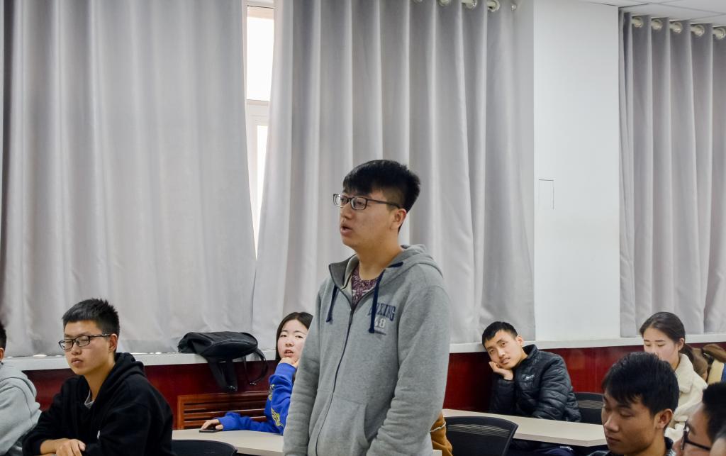 之后韩博士通过PPT从四大方面逐一讲解地铁相关的知识,让同学们对地铁相关工作有了清晰的认识。在讲解期间,每当讲到一个新名词时,如明挖法、暗挖法等都会与在场的同学进行讨论,充分调动在场同学们的积极性,在场的同学也积极响应老师,使得这次座谈会变得更加亲切与愉悦。