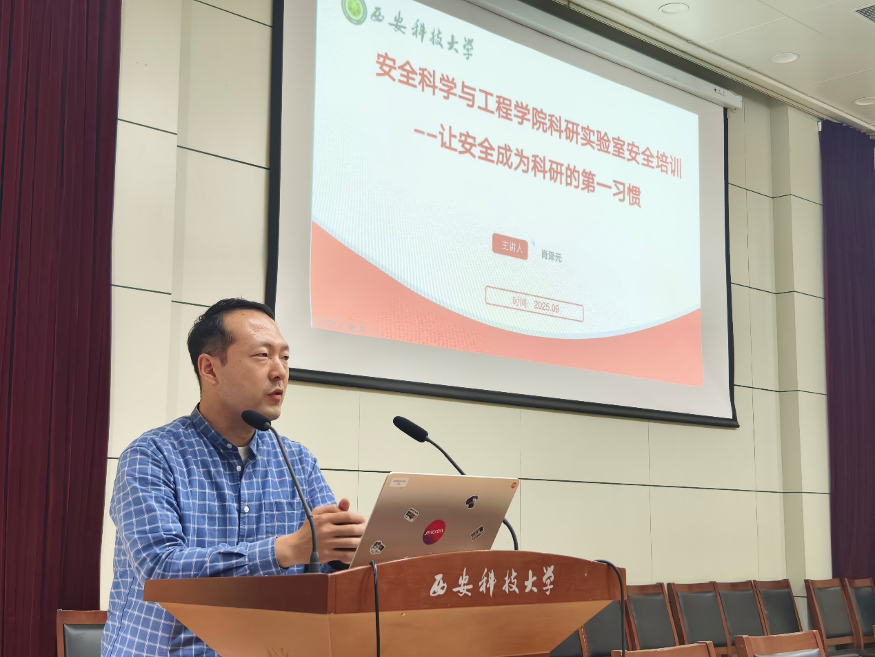 在雁塔校区北院主楼报告厅面向2025级全体研究生开展了科研实验室安全专题培训。学院实验中心教师肖泽元受邀作专题培训。学院2025级研究生参加了培训。培训会由研究生辅导员同超主持。