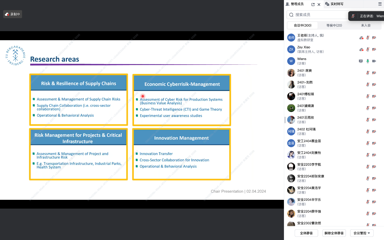 和安全协会组织的安全天地大讲堂第三十三讲成功举办。德国弗莱贝格工业大学Marcus Wiens教授受邀主讲。我校300余名本科生、硕士生在线聆听了讲座。