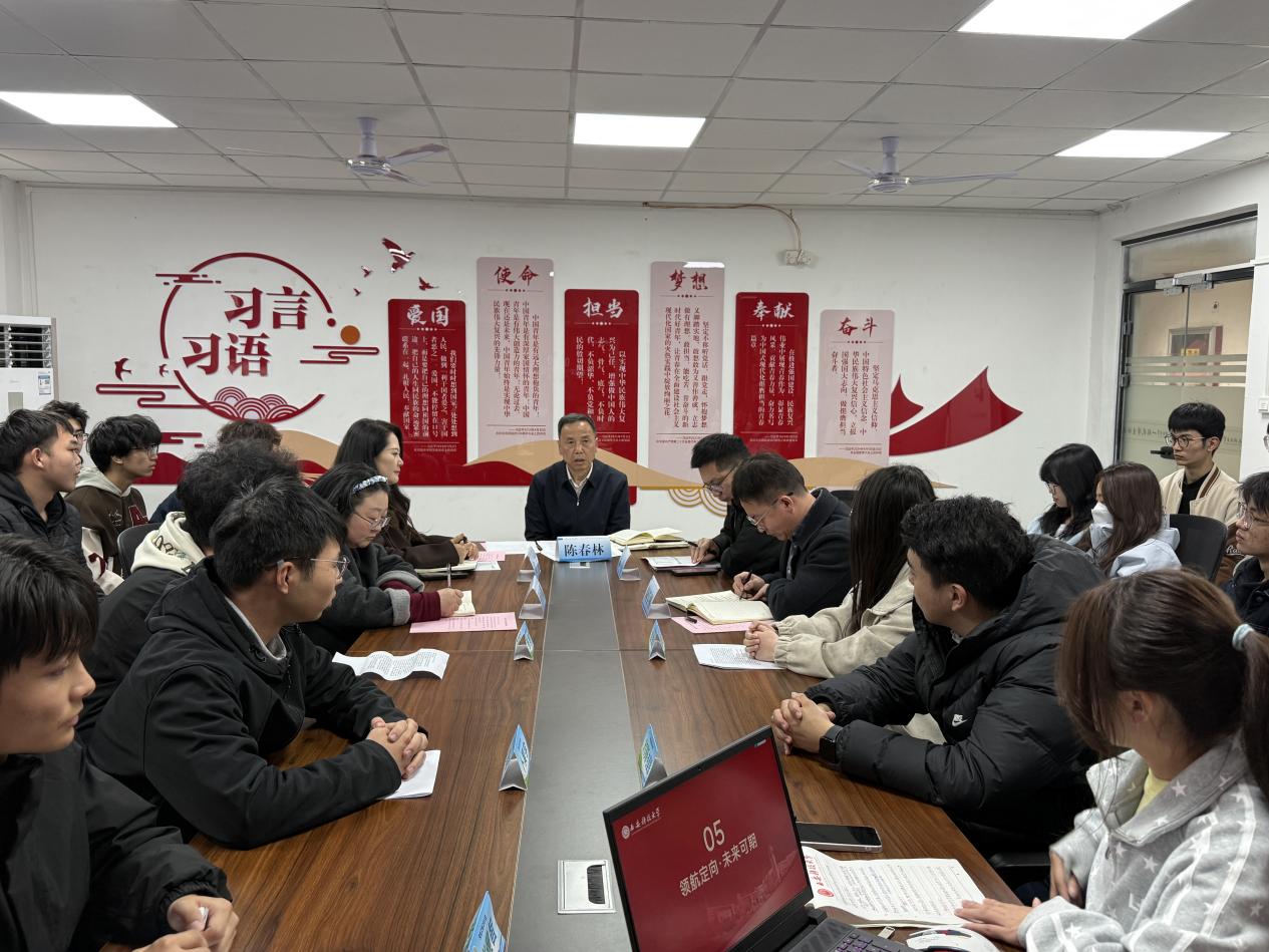 安全工程专业2501班团支部在临潼校区骊山校园14号宿舍楼“一站式”学生社区开展以“传承红色基因赋能学业攻坚”为主题的团日活动暨学情分析会。校党委副书记陈春林,校团委书记高欣、副书记孙小娜,学院党委副书记林伟,学院团委书记、班级辅导员周学刚,以及安全工程2501班团支部全体成员齐聚一堂,围绕成长话题深入交流,共同谋划发展蓝图。