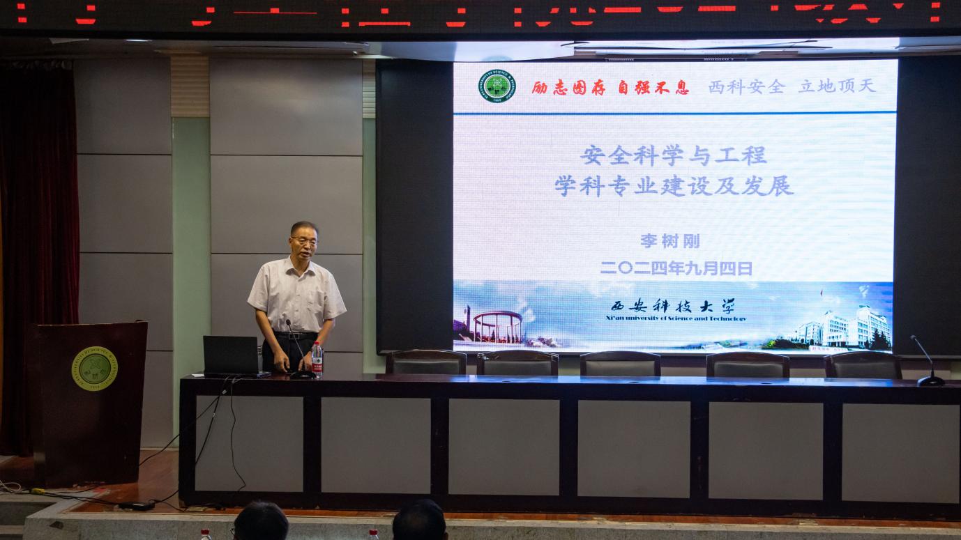 李树刚教授以《安全科学与工程学科专业建设及发展》为题,用通俗易懂的语言和大量的数据实例,从我国安全学科专业发展历程、安全科学与工程学科专业属性、学院安全学科专业概况、师资队伍与资源、人才培养、科学研究、学术交流与国际合作、社会服务与贡献、未来发展方向等9个方面,为2024级本科生全方位、深层次介绍了安全学科专业发展概况及建设现状,诠释了“西科安全 立地顶天”的深层含义,勉励同学们坚定理想信念,厚植家国情怀,增强专业自信,刻苦学习知识,练就过硬本领,争做有理想、敢担当、能吃苦、肯奋斗的新时代好青年,以青春之我、奋斗之我为推进中国式现代化建设贡献智慧和力量。