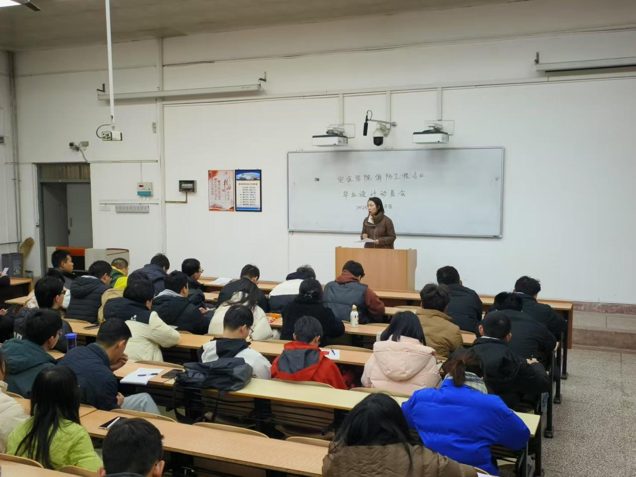 在临潼校区骊山校园分专业召开2025届本科生毕业设计动员暨安全教育大会。学院执行院长林海飞,副院长肖鹏、王彩萍,各系主任,毕业设计指导教师,毕业班辅导员,以及毕业班全体学生参加了会议。