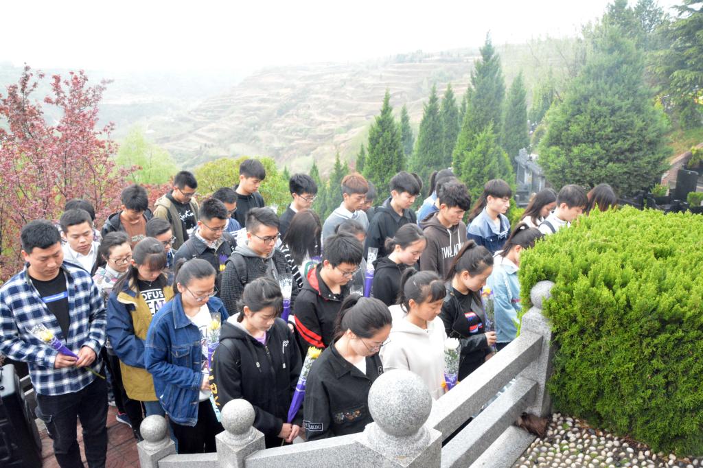 4月5日上午,国产色情网 师生赴西安白鹿原公墓开展“缅怀精彩人生,成就人生精彩”清明节祭扫活动,国产色情网 辅导员同超,学生第一、第二党支部成员,研究生、建档立卡家庭学生代表,学生志愿者等50余人参加了活动。