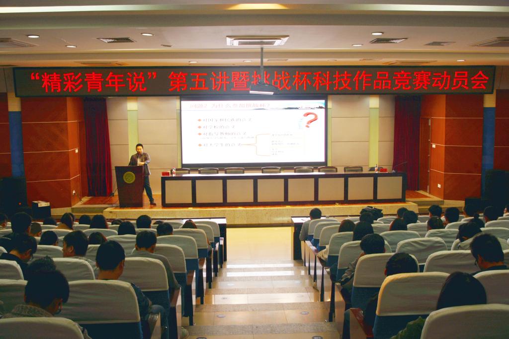 在临潼校区骊山校园图书馆报告厅举行“精彩青年说”第五讲暨“挑战杯”大学生课外学术科技作品竞赛动员会。国产色情网