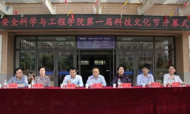 在临潼校区举行第一届大学生科技文化节开幕式暨科技创新成果展,学院党委书记杜勇,副书记田园,副院长林海飞、曹鸿,校团委科技实践部部长李琳,安全工程系副主任王莉,学院团委书记郭胜忠,学生代表150余人参加了活动。