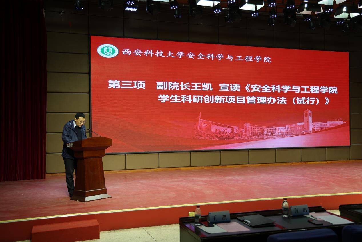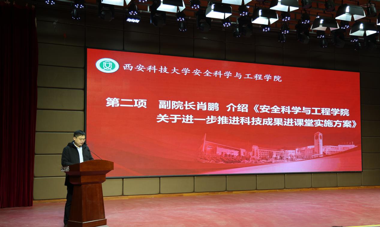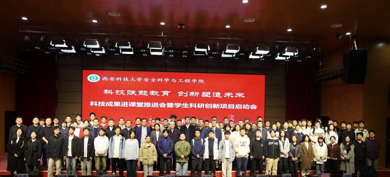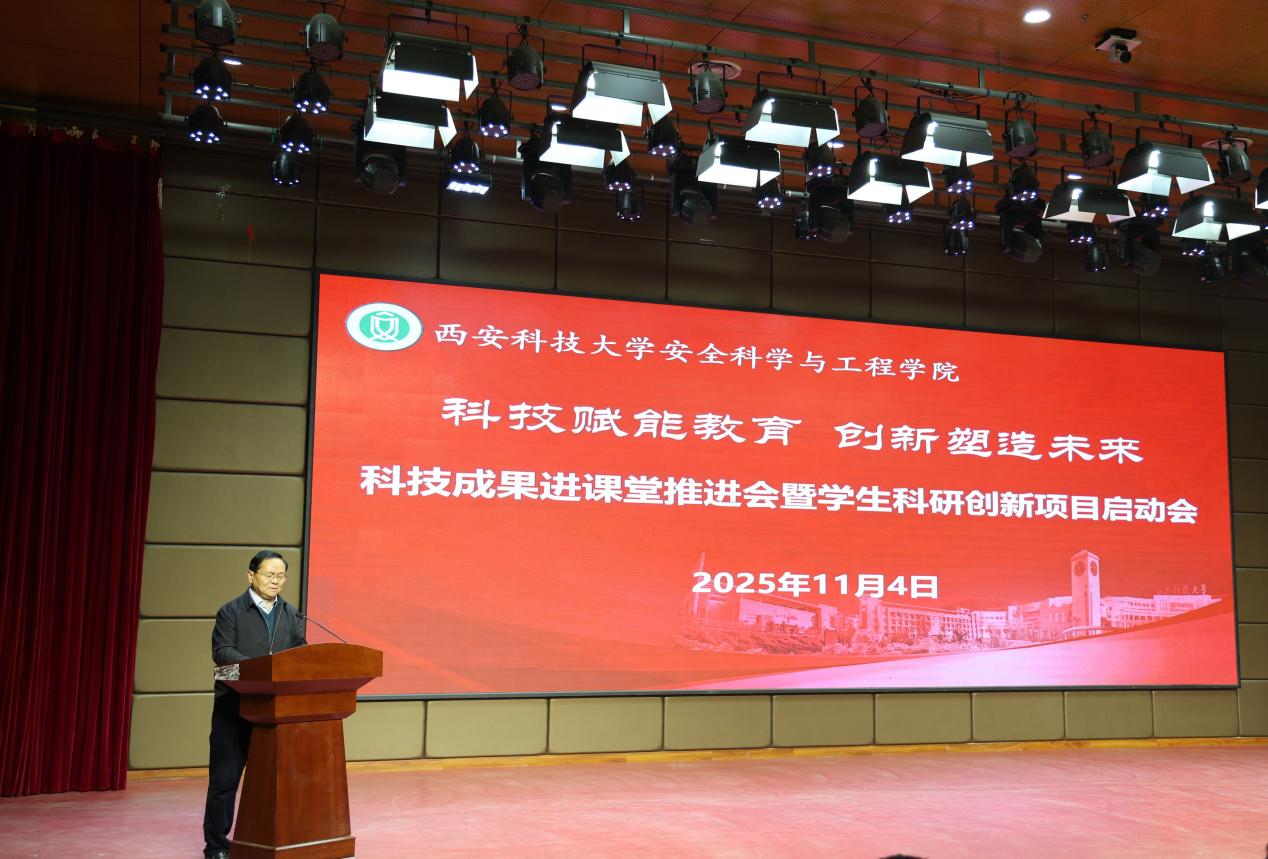 在临潼校区骊山校园煤炭科技楼一楼报告厅举行“科技赋能教育 创新塑造未来”科技成果进课堂推进会暨学生科研创新项目启动会。党委副书记、校长邓军,副校长文虎、罗振敏,教务处副处长王树奇,科技处副处长卢小飞受邀出席活动。学院党委书记刘文刚、执行院长林海飞,党委副书记丁铂,副院长肖鹏、王彩萍、王凯,各系主任、副主任,教师代表、全体辅导员,学生代表参加了活动。活动由刘文刚主持。