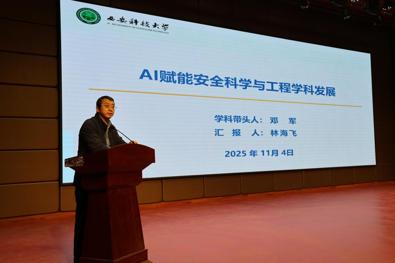 会上,林海飞作了《人工智能赋能安全科学与工程学科发展》的专题报告。他简要介绍了学科发展历程,系统阐述了人工智能在人才培养、师资队伍、科学研究、交流与合作等方面的深度融合路径,展示了学院在矿井智能通风、矿井智能防灭火、矿井瓦斯智能抽采、灾害应急救援等领域的创新成果,彰显了人工智能技术驱动学科发展的广阔前景。