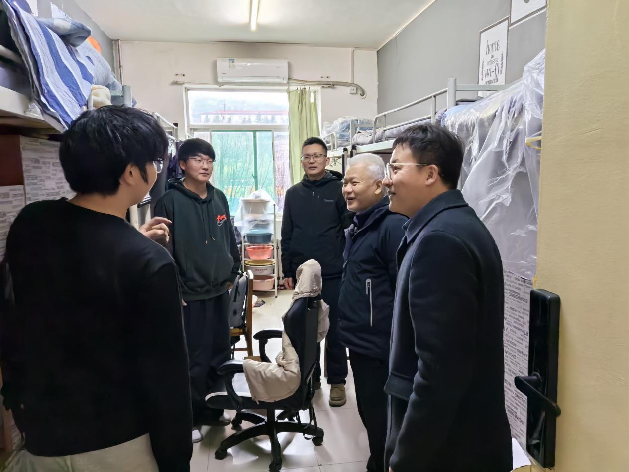 每走进一间宿舍,邓军仔细了解同学们的假期生活情况和返校途中情况,围绕新学期的学习计划、安全稳定等内容与同学们进行了面对面的交流。他希望同学们快速调整作息,以饱满的热情和积极的心态投入新学期的学习,进一步明确奋斗目标,坚定理想信念,珍惜大学生活,努力拼搏奋进,为个人成长和未来发展打下坚实的基础。同时,叮嘱同学们增强安全意识,谨防各类诈骗,加强宿舍建设,遵守校规校纪,共同维护良好的校园环境。