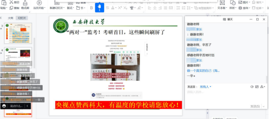 点面结合,制定宣讲提纲。学院学工办主任、团委书记、2021级辅导员郭胜忠牵头组稿,各年级辅导员共同参与,学院党委研究审议通过了线上会议宣讲提纲。提纲从西安疫情发展情况,学校、学院疫情防控举措,疫情下学生的成长,家校联动的契合点等四个方面进行了“面”上的共性阐述,各年级结合年级特点对就业、考研、新生适应等问题进行了“点”上的具体分析。