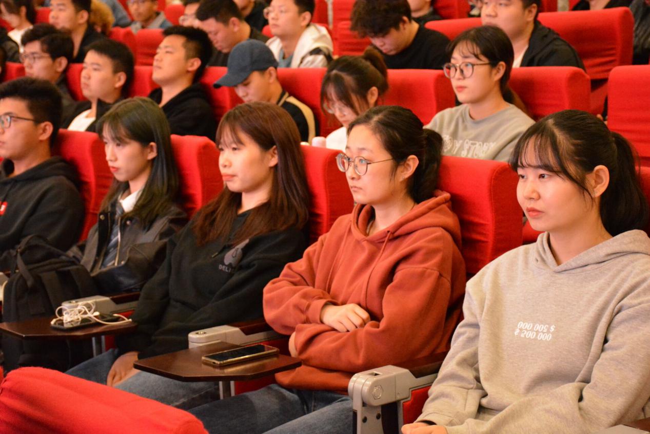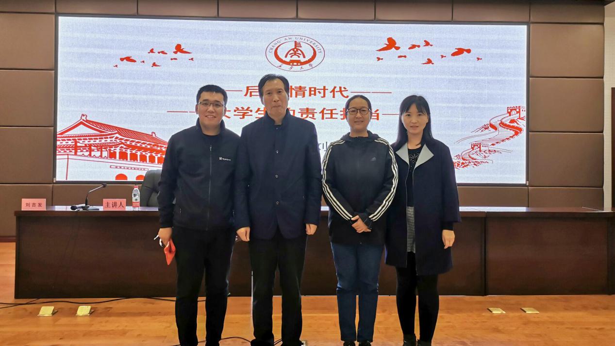 党委副书记田园,辅导员曹月、袁刚和入党积极分子、本科生代表共二百余人聆听报告,报告会由田园主持。长安大学马克思主义学院学术委员会主任刘吉发教授作“后疫情时代大学生的责任担当”主题报告。