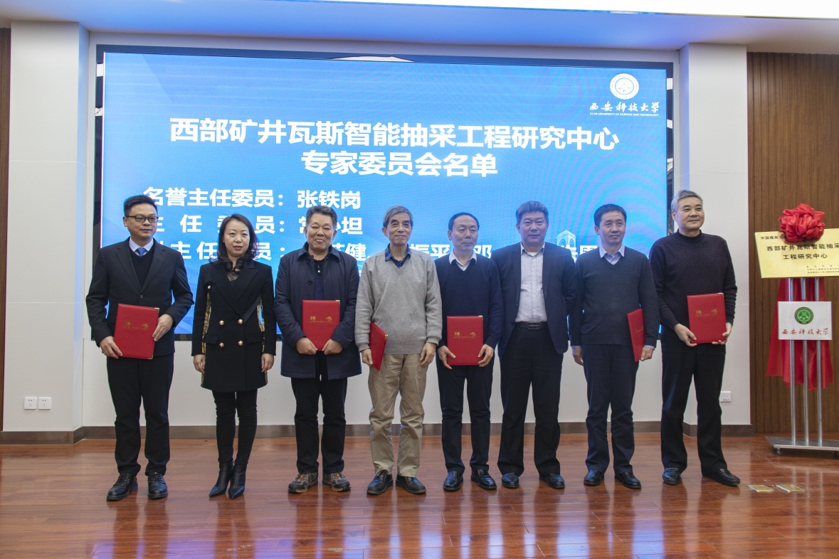 仪式上,彭苏萍、王双明、曹文君、来兴平、共同为“西部矿井瓦斯智能抽采工程研究中心”揭牌。曹文君和来兴平为与会的技术专家委员会主任委员、副主任委员颁发了聘书。