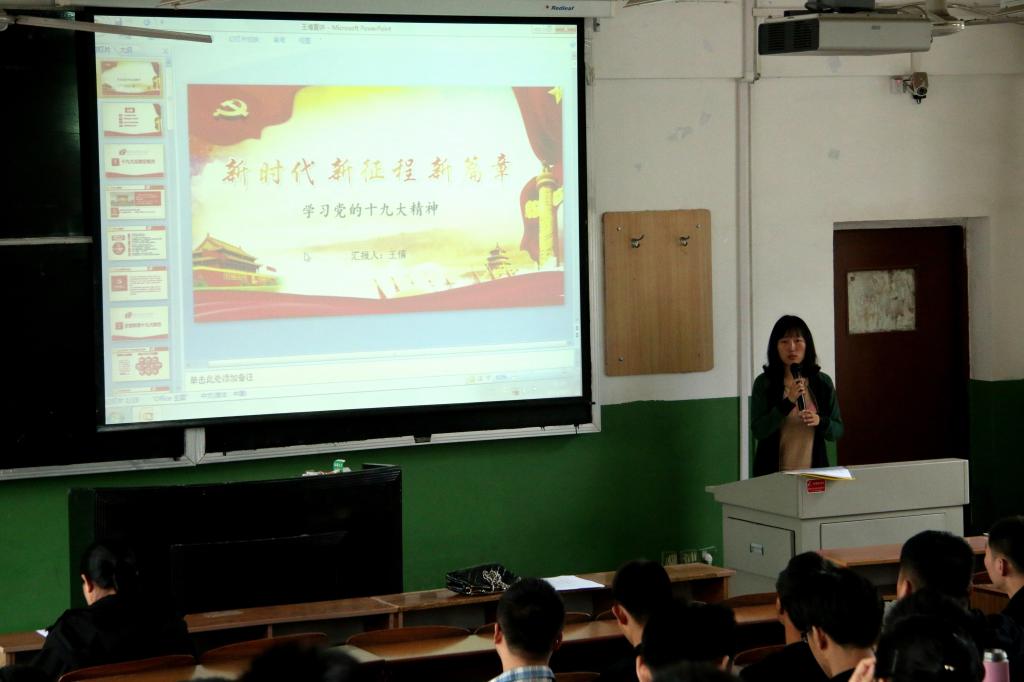 田园就党的十九大报告产生背景、习近平新时代中国特色社会主义思想的主要论断,进行了深刻阐释,对十九大报告进行了全面解读,并结合丰富的时政热点新闻、图片,鲜明展示了过去5年的历史性成就和变革,同学们受益良多。同时,田书记呼吁同学们在专注科学研究的同时关注党和国家政事,并要求同学们认真学习和领悟党的十九大的精神实质和丰富内涵。随后王倩结合十九大精神就做新时代合格党员对研究生党员提出了要求,并为同学们讲解了发展党员工作程序,帮助积极分子了解规程,明确努力方向。