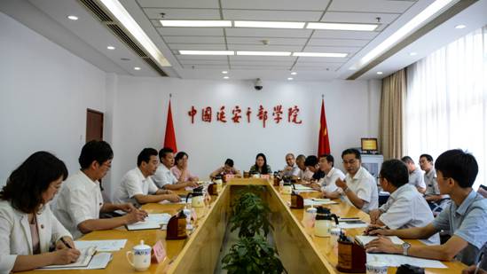 党委书记杜勇、副院长林海飞、副院长曹鸿及相关人员一行18人赴中国延安干部学院考察调研。中国延安干部学院副院长靳铭和教务部副主任王成文、培训部副主任曹琨、培训开发部副处长叶丹和办公厅秘书处副调研员赵欣宇等陪同我院调研组一行参观了校园及教学生活设施并进行了座谈。