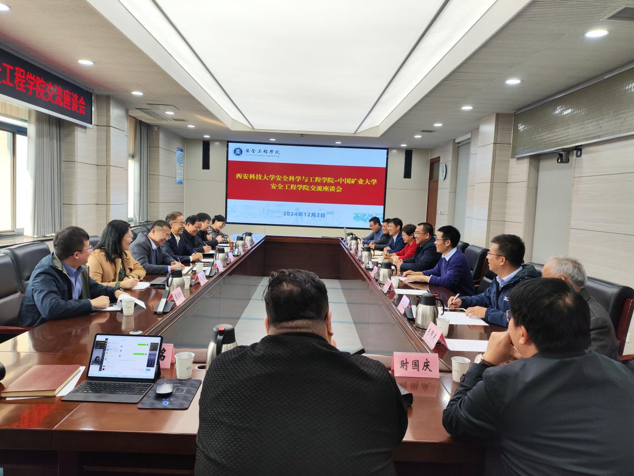 中国矿业大学安全工程学院党委书记王恩元、院长翟成、副书记邵波、副院长郭梅香、王亮、刘晓斐,以及各专业负责人、中心负责人、办公室主任、学工办主任和中国矿业大学矿业工程学院党委书记闵涛、党委副书记高世杰、副院长袁永,以及各系主任、实验教学中心主任、学工办主任参加了座谈交流。