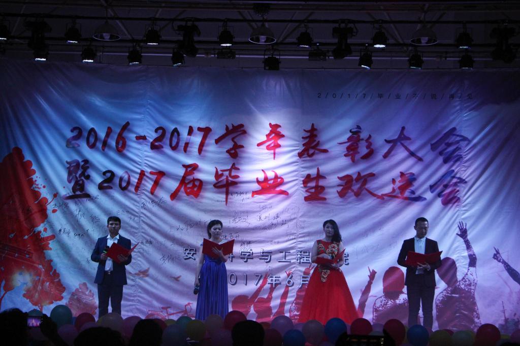 执行院长李树刚教授,学院党政负责人、教师代表,全体受表彰师生及2017届研究生和本科生毕业生参加了晚会。在我校参加安监培训的宁夏煤监局和长武煤管局的安全生产培训班学员应邀出席晚会。