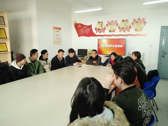座谈会听取了少数民族学生在校期间学习、生活方面的情况及对学校、学院在少数民族教育管理与服务工作方面的建议和意见。杜勇向全体参会人员提出三点希望:一是全体学生要珍惜来之不易的大学生活,努力学好本领,建设美丽家乡;二是学院应继续积极为少数民族学生做好指导与服务,提供良好的成长成才环境;三是要学院要加大对少数民族学生的培养力度,让更多优秀新疆籍少数民族学生能脱颖而出。古丽江就少数民族学生学业、生活等方面问题进行了补充。田园带领学习了学校关于少数民族学生管理的相关规定。