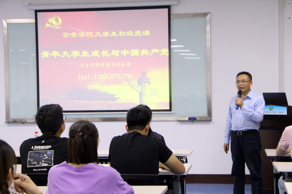 仪式结束后,由学院党委书记杜勇为培训班学员们带来培训班专题辅导第一讲《青年大学生成长与中国共产党》,杜勇以政党及中国政党制度为切入点,从中国共产党的历史使命、当代大学生的历史使命和人生追求、加入中国共产党是当代大学生的正确选择三个方面展开精彩报告,并向全体学员提出了殷切的希望与祝愿:希望同学们努力学习,提升自身文化素养,立足课堂学习,做好学涯规划;祝同学们思想进步、学业有成、身心健康、早日成才,愿同学们早日加入中国共产党。大家都以热情饱满、积极上进的心态聆听了党课教育。