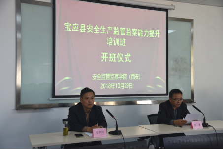 临潼校区开班。宝应县安委会主任、安监局局长沈学权、安全监管监察学院(西安)党委书记杜勇及来自宝应县安委会各成员单位的55名学员参加了开班式。
