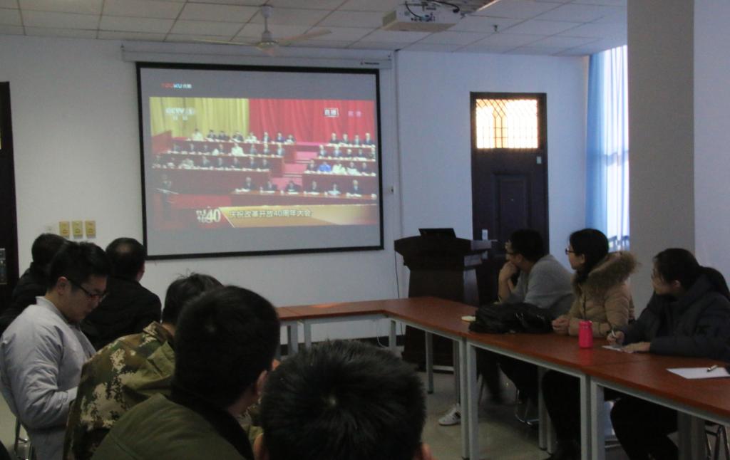 在雁塔校区1508组织研究生党员开展了观看了中共中央、国务院召开庆祝改革开放40周年大会直播观影活动。学院部分教师及博硕士研究生党员共70余人参加了大会。