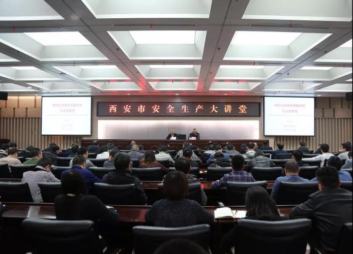 座谈会后,邓院长在市政府1号楼第四会议室参加安全生产大讲堂讲座,并为西安市安监系统做以“城市公共安全风险防控与应急管理”为主题的专题辅导。此次大讲堂由市安监局王利民副局长主持。各区县、西咸新区、各开发安监局领导干部、市安监局全体人员共计180余人参加讲座。