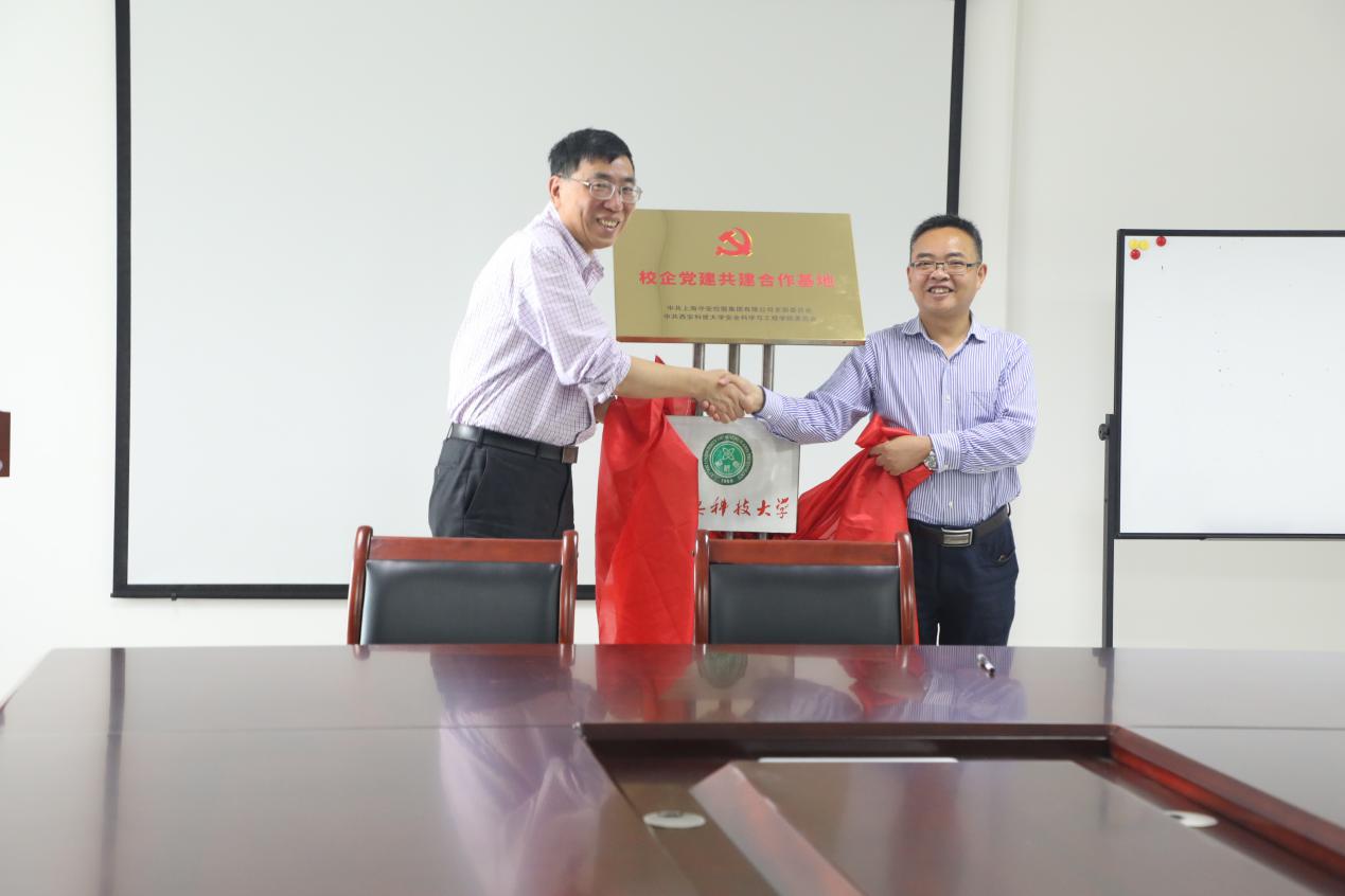 杜勇与俞新培分别代表双方给“校企党建共建合作基地”揭牌。