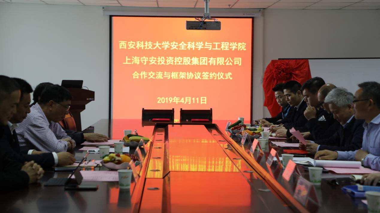 与上海守安投资控股集团有限公司合作交流与框架协议签约仪式在雁塔校区科创大厦2216会议室举行。西安市应急管理局副局长刘超,上海守安投资控股集团CEO俞新培、副总经理侯乾,上海市消防局高级工程师马哲,上海石化工烯烃部安全环保处处长汪忠辉,西安市综合保税区安环部部长孙大为,国产色情网
