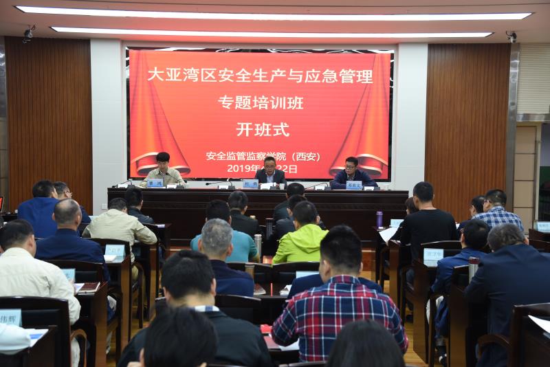 雁塔校区开班。惠州市大亚湾安监局副局长邓育文,安全监管监察学院(西安)党委书记杜勇、行政副院长曹鸿,以及来自惠州市安监局大亚湾安委会所属各单位的58名学员参加了开班式,开班式由曹鸿主持。