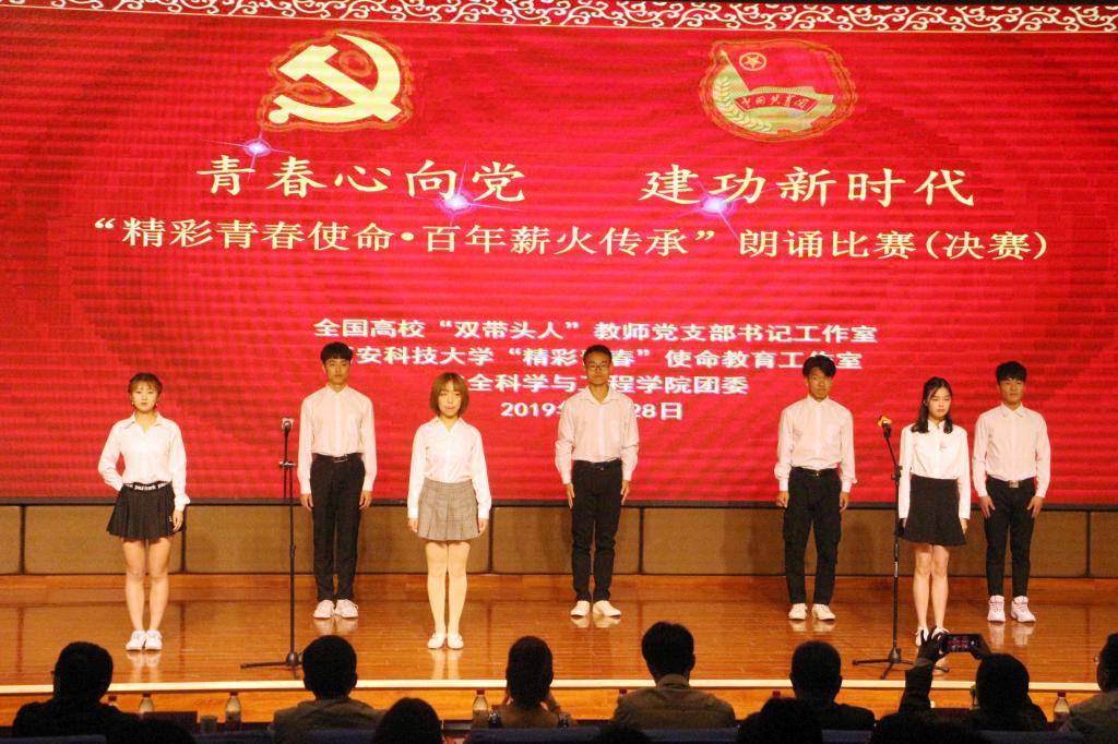 此次朗诵比赛是由获批全国高校首批“双带头人”教师党支部书记工作室的安全系教工党支部、“精彩青春”使命教育陕西省辅导员工作室、学院团委共同举办,学院13个团支部组队参赛、“双带头人”教师党支部教师应邀表演,形成了师生同台颂祖国迎五四的和谐同乐融洽氛围,将进一步激励和引导广大青年学生弘扬爱国主义精神,投身新时代中国特色社会主义伟大建设征程。