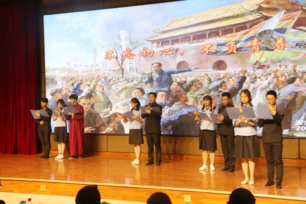 师生们以真挚饱满的感情,抑扬顿挫、声情并茂地朗诵诠释着伟大的五四精神,讴歌着对祖国的热爱和身处新时代的自豪,表达着安全师生永远跟党走的执着和建功新时代的追求。