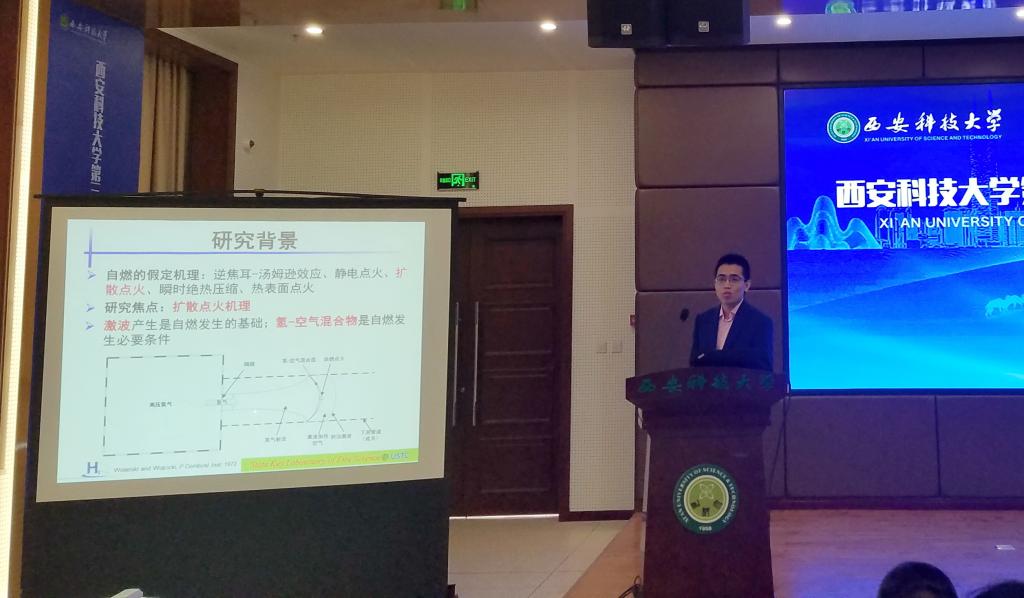 校长蒋林致欢迎辞,介绍了学校发展概况,副校长来兴平代表学校高层次人才做了交流发言。主论坛上,来自中国科技大学火灾科学国家重点实验室弓亮博士与中国矿业大学安全工程学院李金虎博士做了主题学术报告。