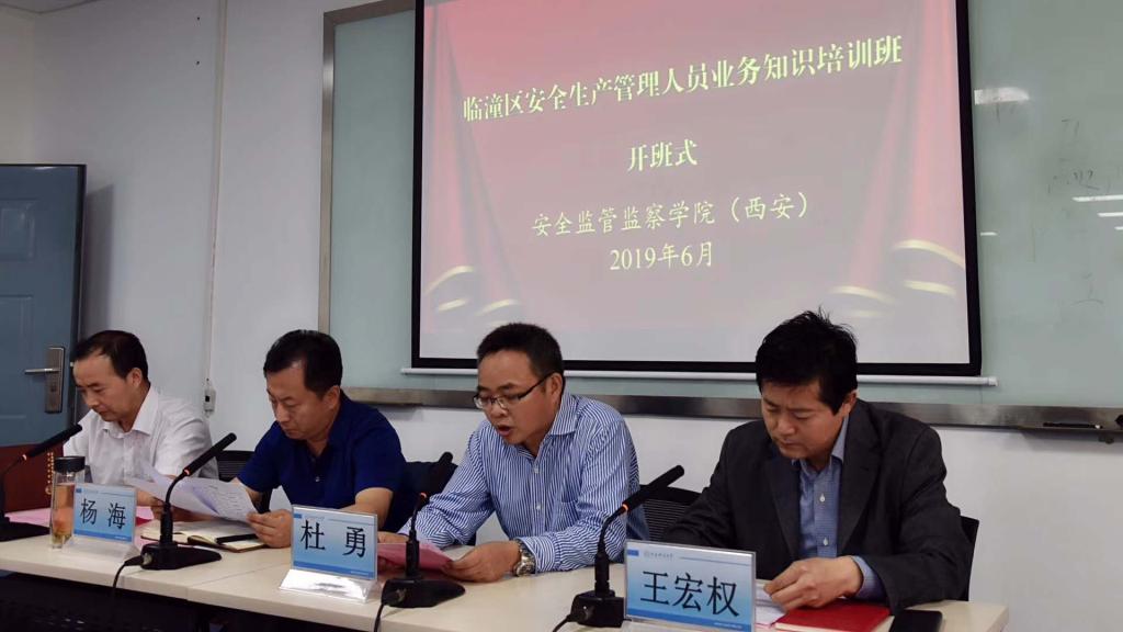 6月21日上午,西安市临潼区安全生产管理人员业务知识培训班在我校临潼校区开班,临潼区应急管理局党委书记、局长杨海,党委副书记王宏权,副局长李向阳,安全监管监察学院(西安)党委书记杜勇,以及临潼区辖内各单位、各企业安全生产管理人员等共计82名学员参加了开班式,开班式由王宏权主持。