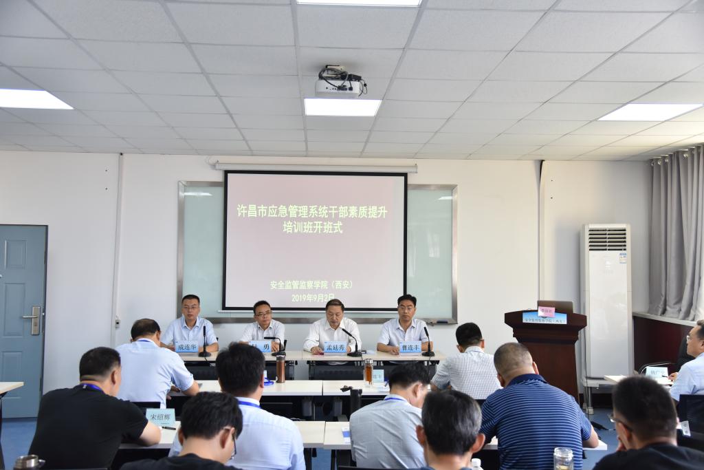 9月2日上午,许昌市应急管理系统干部素质提升培训班在我校临潼校区骊山校园开班。许昌市应急管理局党组副书记、局长孟廷秀,副局长曹连丰,党组成员宋志强,许昌市纪委驻应急管理局纪检组组长张国政,安监学院党委书记杜勇,院长助理成连华及来自许昌市各区、县、开发区应急管理局的近50名干部参加了开班式。开班式由成连华主持。