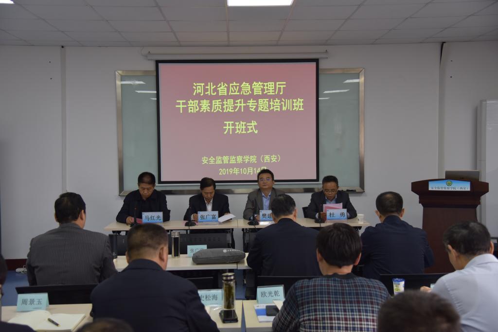 党委副书记樊建武,河北省应急管理厅人事培训处处长马红光,安全监管监察学院(西安)党委书记杜勇,以及来自河北省应急管理厅和雄安新区的48名学员参加了开班式,开班式由杜勇主持。