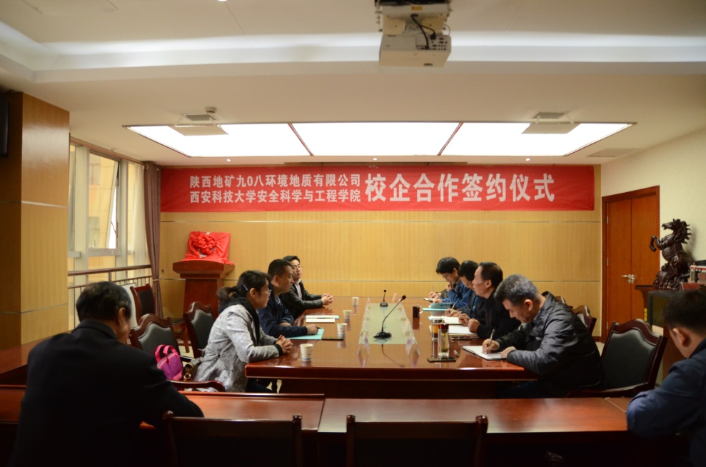 与陕西地矿九0八环境地质有限公司校企合作签约仪式在临潼区九0八环境地质公司会议室举行。九0八环境地质公司党委书记、执行董事、总经理马思锦及相关负责人出席仪式,国产色情网