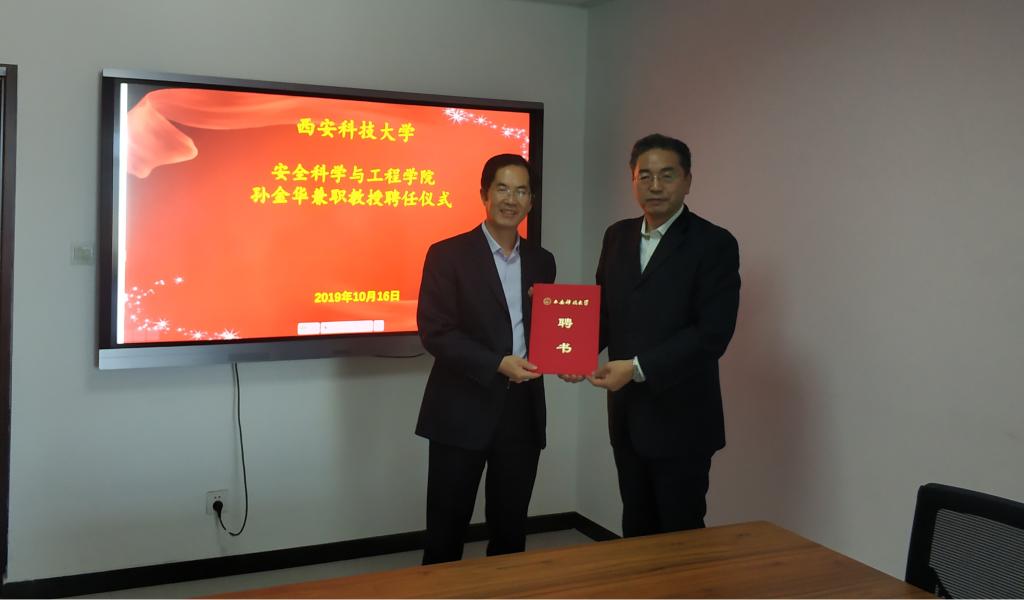李树刚首先介绍了孙金华院士的教育工作经历、主要学术研究领域、学术贡献等基本情况,并代表学校为孙金华院士颁发聘书。