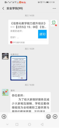 关于2020年春季学期本科教学工作安排的通知》。根据学校总体安排,学院在开学前3周便紧锣密鼓筹备线上教学工作,为各位任课教师推送各类教学平台和直播工具使用培训链接,并多次征求各一线教师线上平台操作技术问题,及时与平台管理员沟通反馈,协助任课教师结合课程属性选择合适的线上教学平台开展教学活动。