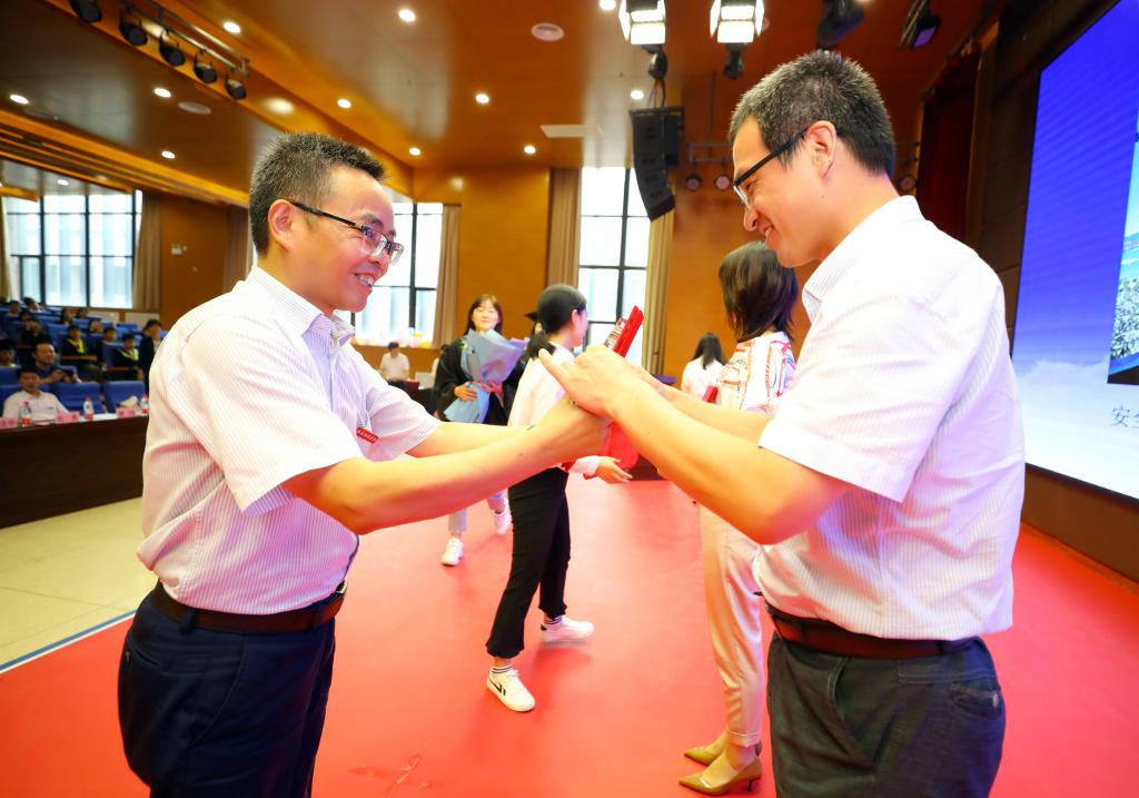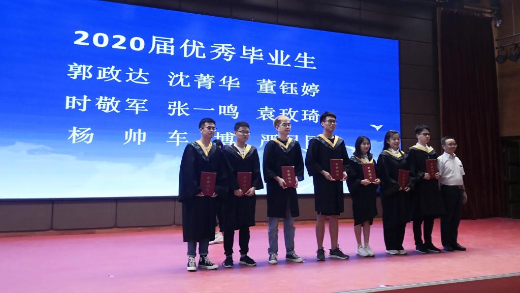 关于表彰2020年“最美教师”的决定》,学院党委书记杜勇为学院优秀本科毕业生、最美教师颁奖,学生代表向最美教师献花表示感谢。