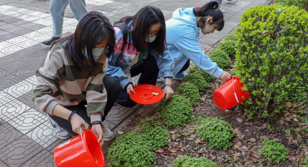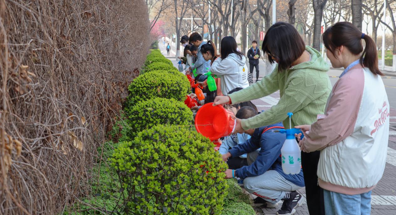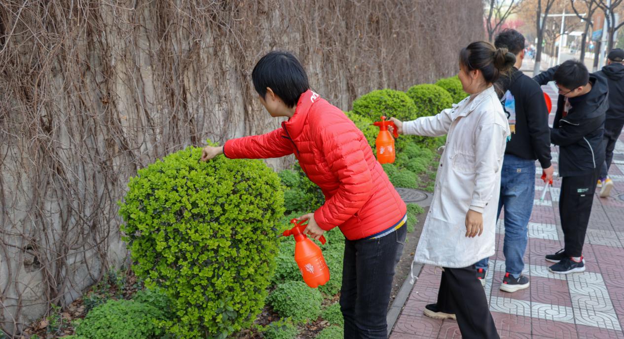在支部书记的带领下,党员同志们迅速投入到热火朝天的劳动之中,按照划定好的区域进行浇水、捡拾枯枝、清理垃圾,大家忙而不乱,干劲十足,展现了新时代青年的劳动风貌,用实际行动改善校园环境,建设更美好的生活家园。