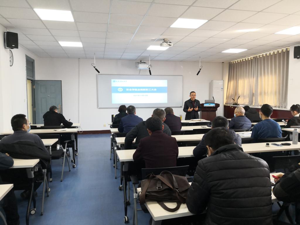 在骊山校园14号教学楼504教室召开全体教职工大会,会议由学院党委书记杜勇主持。