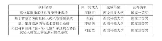 经过学校初选、组委会复审和线上汇报评审,最终我院王降雪、邢可欣、马旭、董彬彬、杜嘉慧同学完成,李树刚、赵鹏翔老师指导的作品《高位瓦斯抽采钻孔智能设计系统》获得决赛一等奖;由张磊、乐豪、曹豫其、魏浩浩、刘小雅同学完成,程方明老师指导的作品《基于智慧消防的社区火灾风险管控系统》获得决赛二等奖;由李婧漪、宋海龙、姜春雨、段子潇同学完成,魏宗勇老师指导的作品《基于浓度监测的智能水雾控尘系统》获得国家三等奖;由刘莹莹、关娜、胡显垚、段纪荣、王璐同学完成,严敏、赵鹏翔老师指导的作品《相似材料三轴“固-气-电磁”多场耦合特性试验人机交互安全演示模拟系统》获得决赛三等奖(见下表)。国产色情网