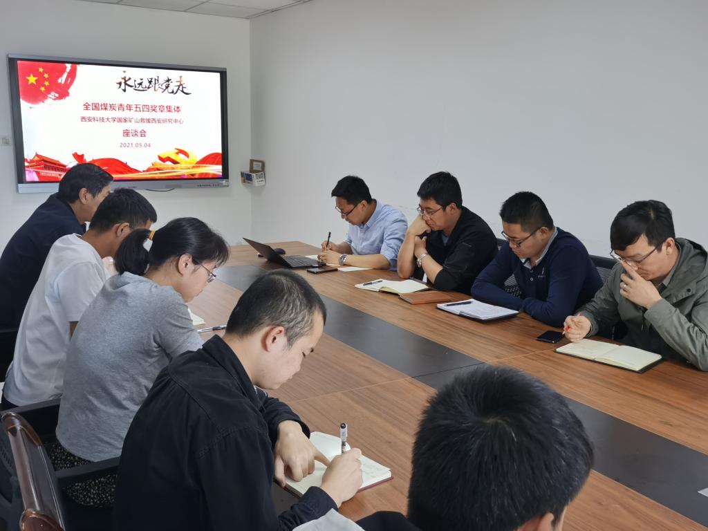 国家矿山救援西安研究中心召开庆祝“五四“青年节暨荣获第九届“全国煤炭青年五四奖章集体”座谈会,我校科技处处长、国家矿山救援西安研究中心主任文虎教授和中心全体成员参加座谈会。会议由安全工程系党支部副书记王凯主持。