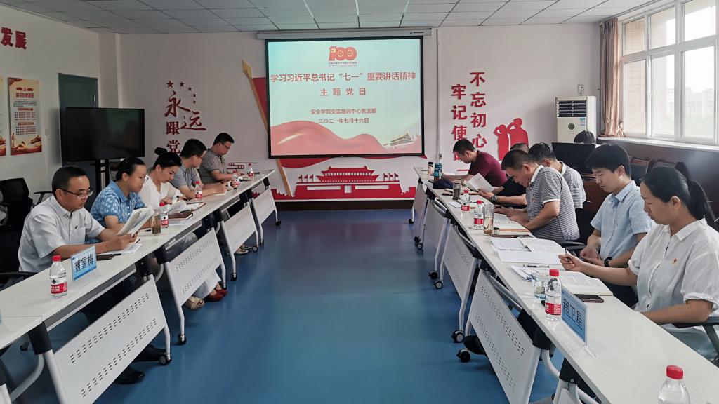 7月16日下午,安监培训中心党支部组织开展党史学习教育专题主题党日活动暨学习习近平总书记“七一”重要讲话精神专题会。省委党史学习教育第十二巡回指导组副组长、省委军民融合办公室副主任张倩黎一行三人,在校党委副书记樊建武、陈春林,组织部部长刘文刚、党校办主任程卫星,党委宣传部长曹雪梅陪同下列席了本次主题党日活动。党支部书记陈婷主持专题学习会。