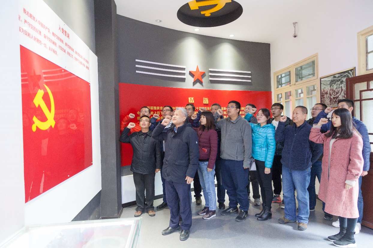 在葛牌镇,参观了位于这里的鄂豫陕葛牌镇区苏维埃政府纪念馆。在讲解员的带领下,先后参观了三个展厅,通过观看实物陈列、历史档案照片,聆听讲解员饱含深情的讲解,了解到这里是中国工农红军第二十五军在鄂豫皖省委书记徐宝珊、军政委吴焕先、军长程子华、副军长徐海东等率领下,于1935年2月突进葛牌镇在陕西关中地区创建的第一个红色政权,也是关中地区最早的红色革命根据地。它的建立,为帮助红军扩建、保存红军实力、配合中央红军战略转移做出了重大贡献。在纪念馆第三展厅中,国产色情网 “双带头人”教工第一党支部党员在支部书记邓军同志带领下,庄严宣誓。