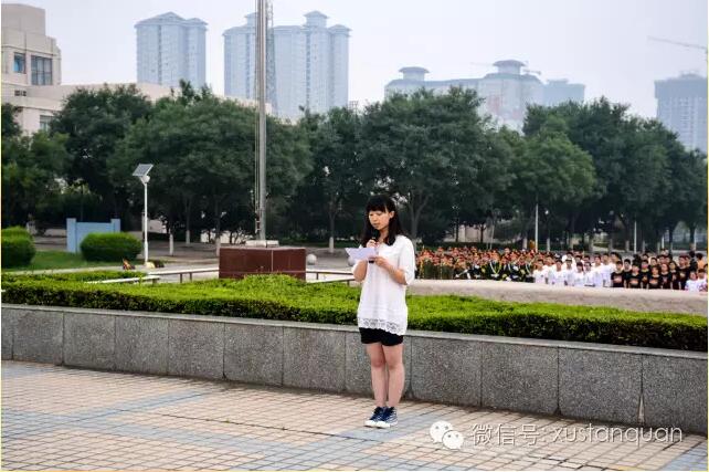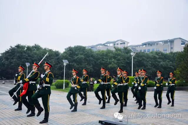 06:30所有同学在明德广场集合完毕。在全体师生的注目下,英姿飒爽的国旗护卫队队员们护送五星红旗进场,伴着军乐队演奏的国歌,五星红旗冉冉升起。